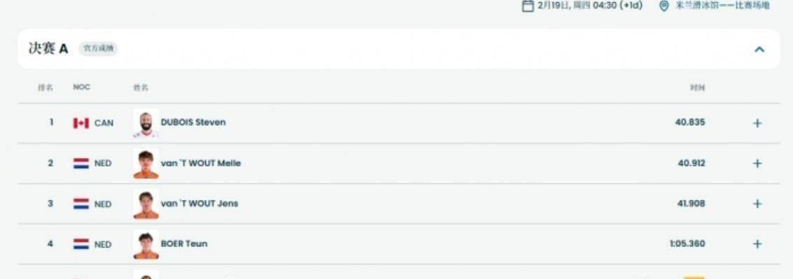 然而,短道速滑的魅力就在于它的不可预测性。 比赛进行到中段,意外突然发生。 被视为头号夺冠热门的荷兰队,其队员(据称为名将维尔泽波尔的妹妹)在滑行中自己失去平衡,重重摔出了赛道。 这一摔,不仅让荷兰队瞬间落后了大半圈,也彻底打乱了场上的争冠格局。 尽管荷兰姑娘们没有放弃,奋力追赶,但巨大的差距让她们最终只能接受第四名的结果。