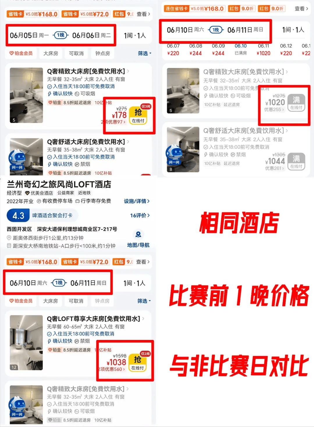 对于一座城市举办这么盛大的赛事,酒店稍微涨价也是可以理解,毕竟这也属于正常的市场供需。