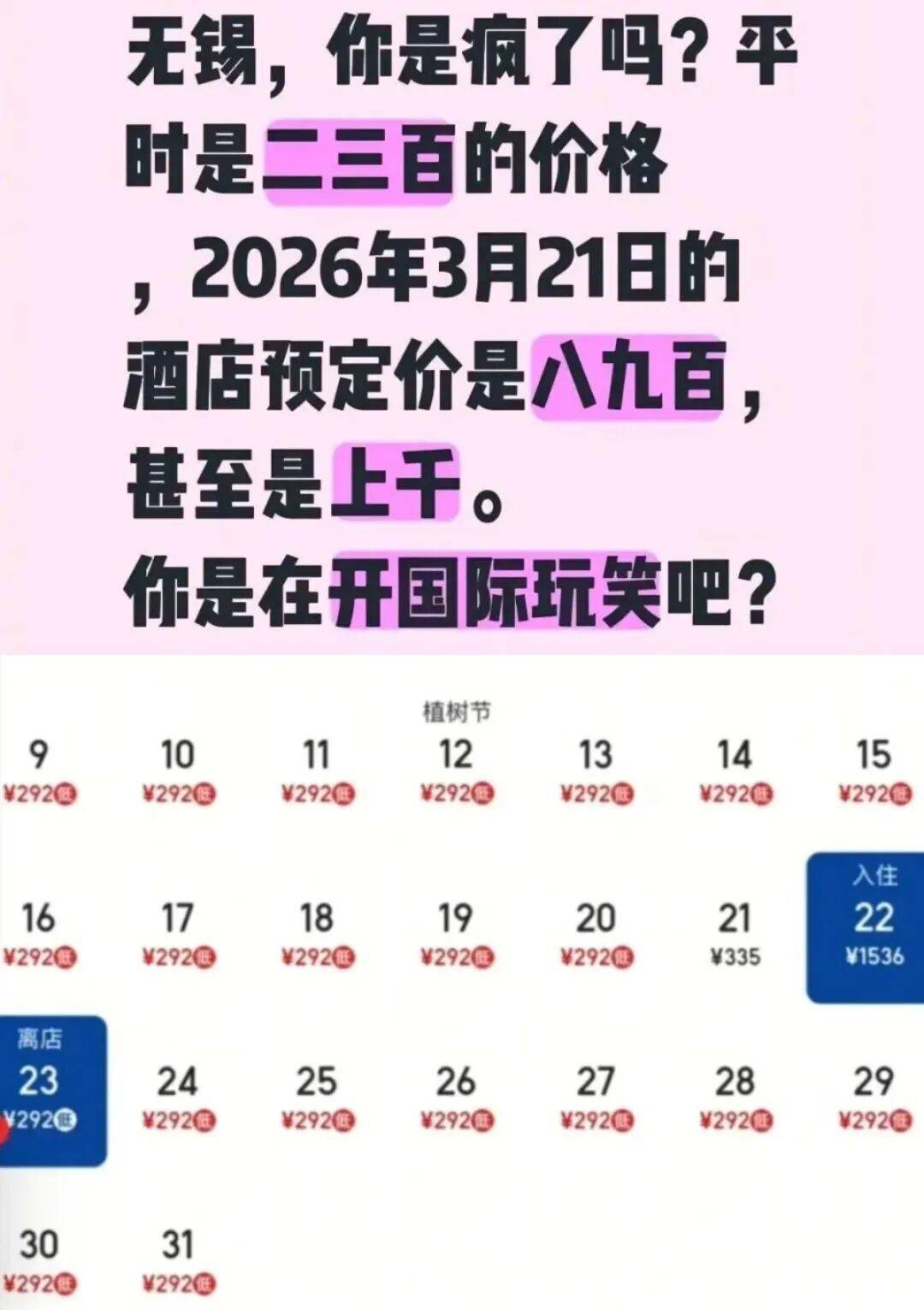 “这种已经习以为常了,比起这种直接涨价更可怕的是自己提前几个月就预订的酒店,最后在赛事公布举办日期后,居然直接被商家打电话说要装修为由,让我退房,最后到了赛期再看,酒店就是在正常运营,但是价格比我预订的价要翻数倍!”