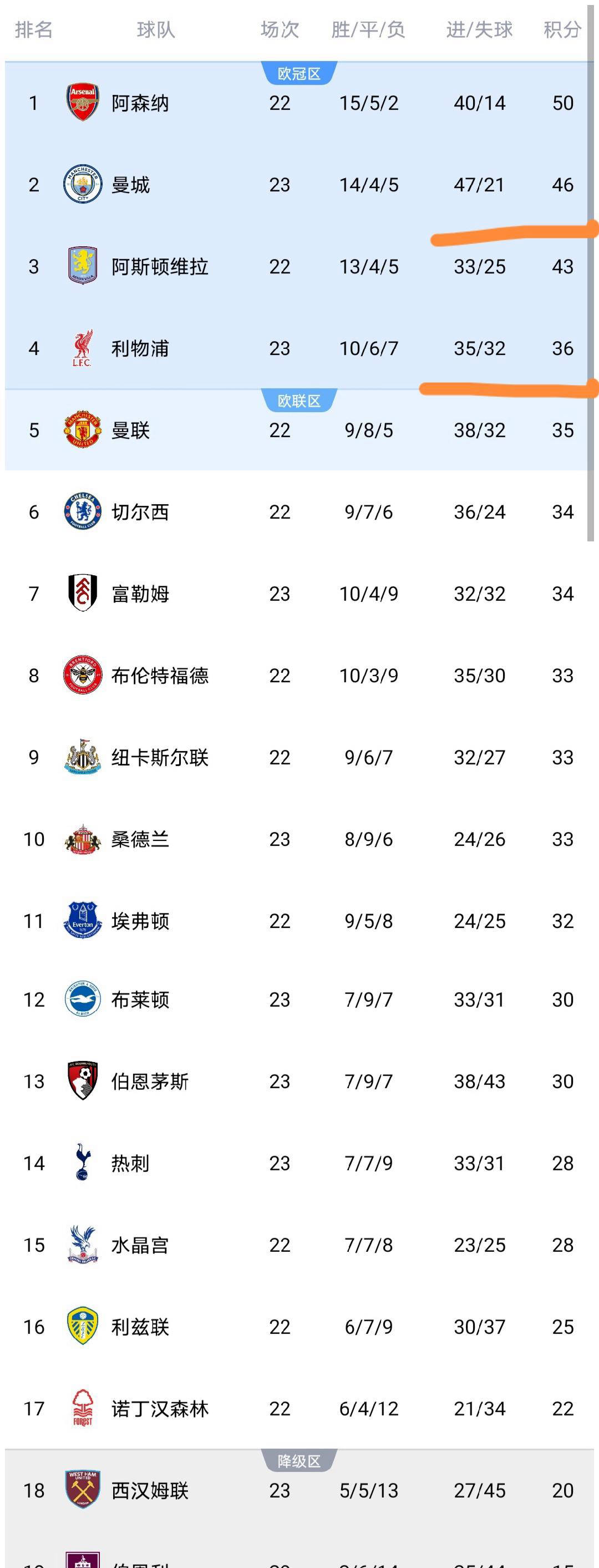 英超最新积分榜更新:利物浦意外失利曼城稳步逼近榜首热刺连战成平局世界杯-足球赛事比分体育网