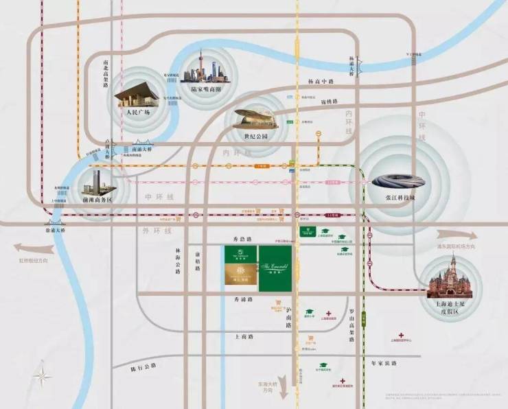 通过外环、中环、南北高架以及紧贴社区外围的18号线,绿宝园·翡梵的业主能畅达包括陆家嘴、张
